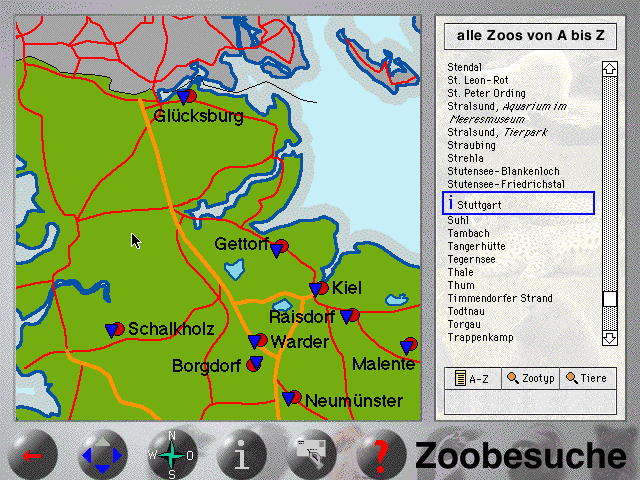 Zoos, Wildparks, Aquarien, die direkt angeklickt werden können. Unser