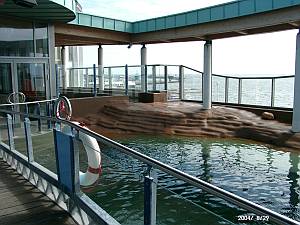 dümpeln im braun gestrichenen Beton-Absperrbecken der