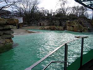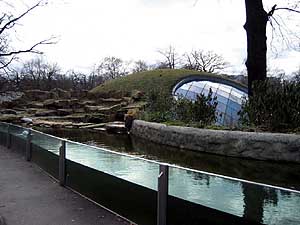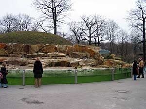 Im Vogelhaus und der Fasanerie werden in überwiegend liebevoll gestalteten Volieren und Flugräumen über 200 Arten gehalten. Aufsehen erregende Zuchterfolge gab es jüngst bei den Kiwis, den Rabenpapageien und den Balistaren. Zwischen Sumpfvogelpanorama und Zebrahaus bekommen die Andenkondore und die Karakaras in einer über 1000qm großen Flugvoliere eine neue artgemäße Unterkunft. Unauffällig erscheint der grasbewachsene Bau des neuen Pinguinhauses, dessen Eröffnung im Juli 2002 war. Im vollklimatisierten Innenraum mit großem 240.000 Liter fassenden Becken lassen sich die Königs- und Felsenpinguine neben einigen Enten beobachten perfekt über und unter Wasser beobachten. Künstlicher Schneefall und eine spezielle Beleuchtung erzeugen hier wirklich wenig antarktische Atmosphäre. Die beiden mit Felsen gut strukturierten Außengehege beherbergen schließlich Humboldt- und Brillenpinguine sowie Schwäne und Enten. Leider sind die Scheiben des Brillenpinguinbeckens etwas flach, sodass achtlose Besucher teilweise versuchen die Tiere zu begrabschen. Parallel dazu entstanden auch die neuen Robbenfelsen. Durch große Panzerglasscheiben kann der Besucher die Seelöwen in ihrem sehr geräumigen Becken (mit Wellenanlage!) vortrefflich beim Schwimmen verfolgen. Über eine Bergkuppe steigt man schließlich noch zu den Becken für die Seebären und Seehunde hinab – auch hier viel Platz für die Tiere. Ein Mutter- Kindgehege und eines für Otter runden den teuersten Neubaukomplex des Berliner Zoos ab. Gefällt mir sehr gut. Letzte Blicke werfe ich auf die schönen historischen Rinder- und Antilopengehege sowie das einzigartige Hirschrevier mit seinen seltenen Bewohnern. Das große Aquarium rundet den Besuch ab. Dazu nur soviel: Nach Fertigstellung des großen Haibeckens 1999 wurden die Landschaftsaquarien und das Rundumbecken 2001 völlig neu gestaltet. Nach Ableben der Komodowarane haben die Grünen Leguane deren großes Terrarium bezogen. Die Quallen und die vielen tropischen Fische sind in mehrheitlich sehr ansprechenden Aquarien untergebracht, allerdings erschlägt mich jedes Mal die Vielzahl der Arten. Zoo UND Aquarium an einem Tag geht eigentlich gar nicht! Als Zukunftsplan soll das 90 Jahre alte Haus einen zweiten Anbau mit riesigem Meeresbecken mit neuem Restaurant bekommen – wahrscheinlich eine Reaktion auf die Sea-Life-Centers die überall wie Pilze aus dem Boden sprießen. |