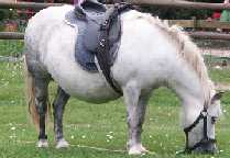 stand ein einsames, gesatteltes Pony angebunden an einen