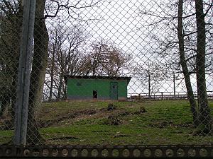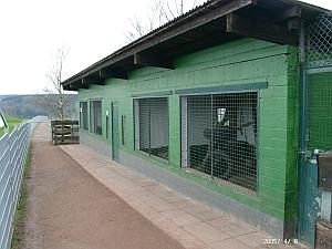 Tierhaus mit noch kleineren und kahlen Außengehegen für