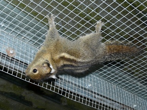 ein Eichhörnchen. Aus einem gewöhnlichen Käfig heraus