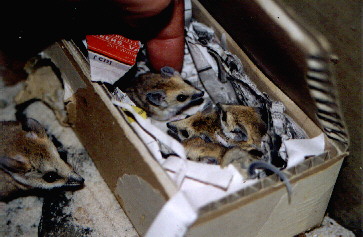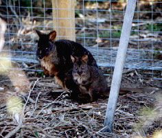 Enclosures are now going up within the fence. Animal wise we recently obtained a female eastern bettong from Tasmania, and a male from a zoo in Canberra. We believe this is the only pair of this species on mainland Australia. They are great display animals at night hopping round their enclosure, and quite happy to come up to someone's feet and investigate. You can't see them at all during the day, as they hide away in a nest. Other animals expected soon include brush-tailed bettongs and long-nosed potoroos from Taronga Zoo, sugar and squirrel gliders from South Australia, quolls from Perth Zoo, parma wallabies and more pademelons from a local university, and possibly brush-tailed phascogales from Healesville. We've also got a pair of dingo pups, unrelated and DNA tested. At the moment they are causing havoc at home as we familiarise them to people.
