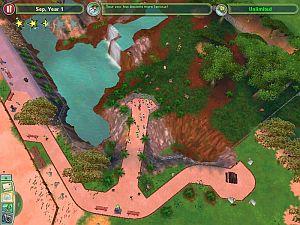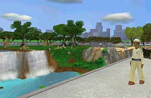 Tiere betrachten kann. Die Möglichkeit, seinen eigenen Zoo aus Besuchersicht zu erleben eröffnet sogar eine Form der Visualisierung von Gehege-Entwürfen, die ZooTycoon zu einem Werkzeug für echte Zoo-Gestaltung machen könnte. |