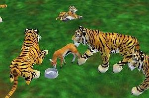 Auf dieser Seite bieten wir ergänzend zu unserem vergleichenden Test der Zoo- und Freizeitpark-Simulations-Spiele verschiedene Grafiken und Screenshots mit kurzen Kommentaren. Dabei geht es uns hauptsächlich um die Möglichkeit einer realistischen Darstellung von Parkgestaltung, Tieren und/oder Gehegen. Zoo Tycoon 2 ist zur Zeit das neueste Zoo-Simulations-Spiel und technisch auch das ausgereifteste. Die neue Version holt nach, was die Konkurrenz erfunden hatte: freie Bewegung durch den ganzen Zoo aus jeder Perspektive (z.B. "Gastmodus": als Besucher durch den eigenen Tierpark wandern), Tierpfleger-Modus, Fotosafari. Neue Gestaltungs-Werkzeuge ermöglichen Gehege- und Gartenbau fast ohne Einschränkungen. |